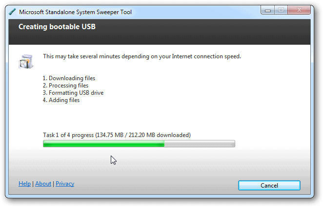 8. Now wait while the file is downloaded, it processes files, formats the USB Drive, and adds files.