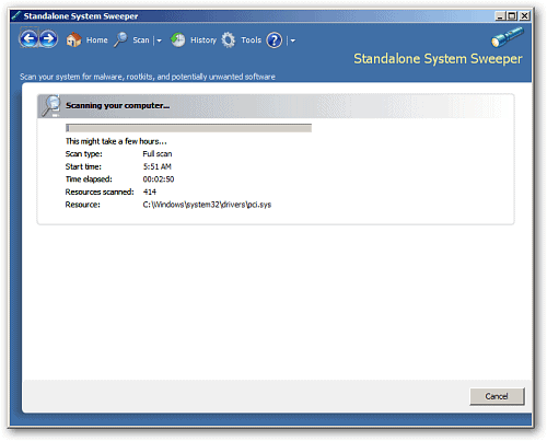 4. Then wait while it scans for Rootkits and other types of malicious software.